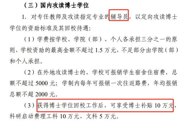 例如廣西師范大學在相關文件中提到,“對專任教師及攻讀指定專業的輔導員,獲得博士學位回校工作后,可享受博士補貼10萬元”。