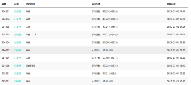 廣東某地市陽光問政平臺上,出現多條關于高中雙休的留言。