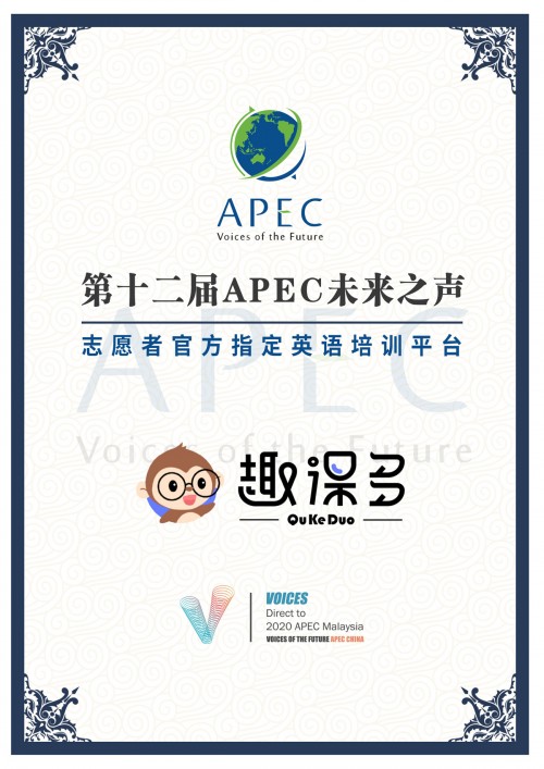 2020年3月18日,星辰教育(原輕課)與APEC未來之聲聯(lián)合宣布,雙方首度達(dá)成合作。星辰教育旗下在線學(xué)習(xí)平臺趣課多APP,將作為“第十二屆APEC未來之聲志愿者官方指定英語培訓(xùn)平臺”,為來自全國各地的優(yōu)秀青年志愿者提供專業(yè)的英語培訓(xùn)支持。