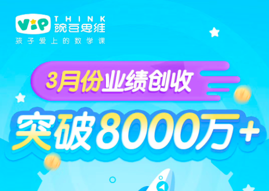 在線少兒數學思維教育機構豌豆思維宣布其3月單月營收破8000萬