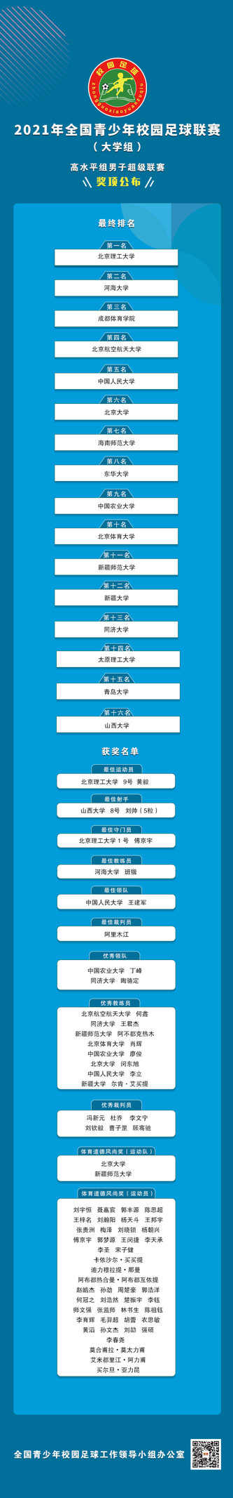 附:2021年全國(guó)青少年校園足球聯(lián)賽(大學(xué)組)高水平組男子超級(jí)聯(lián)賽各獎(jiǎng)項(xiàng)名單