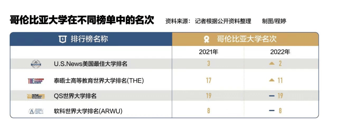2021年9月《美國新聞與世界報道》雜志發(fā)布的2022 U.S. News 美國大學排名中,哥倫比亞大學(下簡稱“哥大”)與哈佛大學、麻省理工學院并列第二。在2022年泰晤士高等教育世界大學排名中,哥大排名第十一。