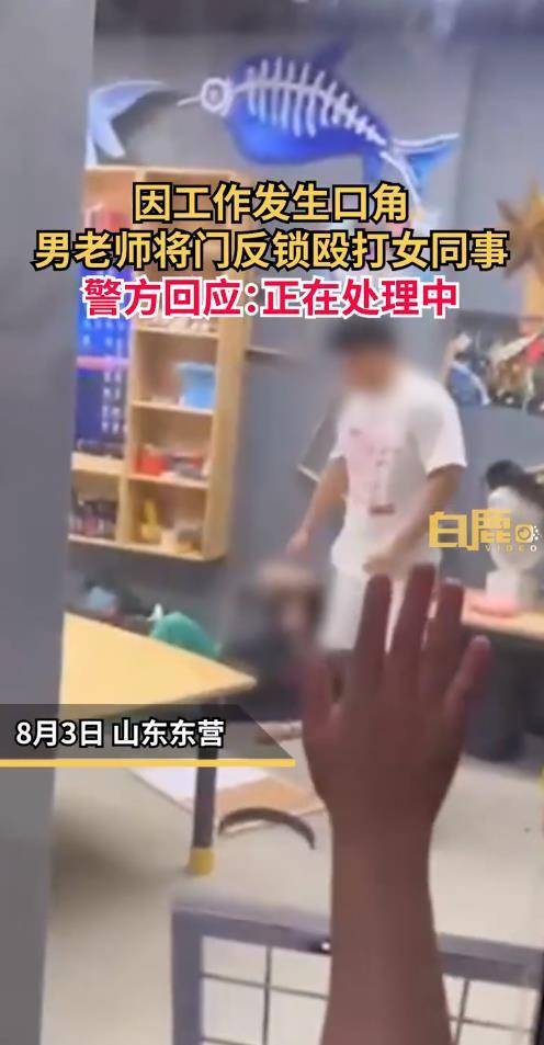 8月3日,山東東營。網(wǎng)曝東營東城藍(lán)色港灣楊梅紅藝術(shù)教育一男老師因和女同事發(fā)生口角,追著女老師去教室將門反鎖毆打女老師。