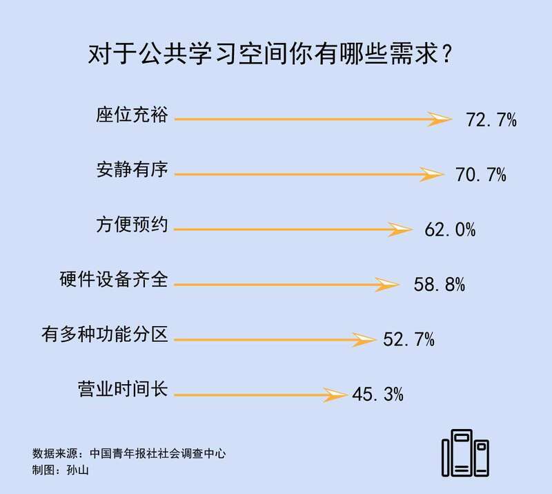 “有一些免費的公共學習空間,比如城市中的圖書館,通常只在白天開放,而且座位有限,假期里早上總要排長隊。”張菲說,還有的公共學習空間,沒有明確的功能分區,造成不同需求的人在同一個區域內,比如有的人需要用電腦,但敲擊鍵盤和使用鼠標的聲音,可能會對旁邊看書學習的人帶來影響。