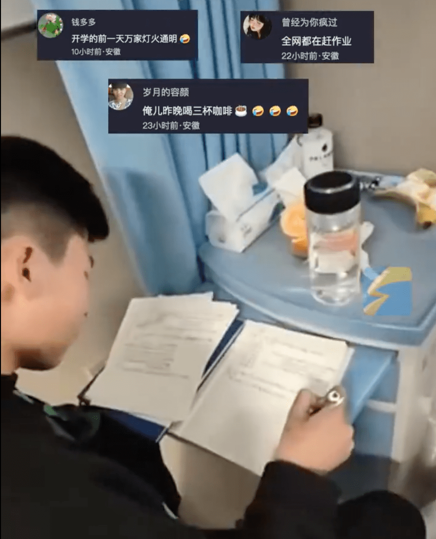 男孩媽媽張女士表示,醫生一天來幾遍,孩子作業不寫完堅決不睡覺,“別管(作業)質量咋樣,這精神絕對可嘉”。