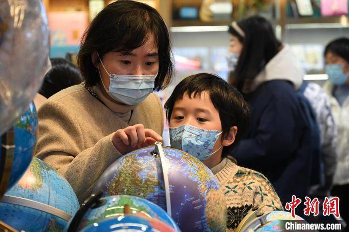 安徽合肥,中小學(xué)開(kāi)學(xué)前夕,家長(zhǎng)和學(xué)生在選擇地球儀。