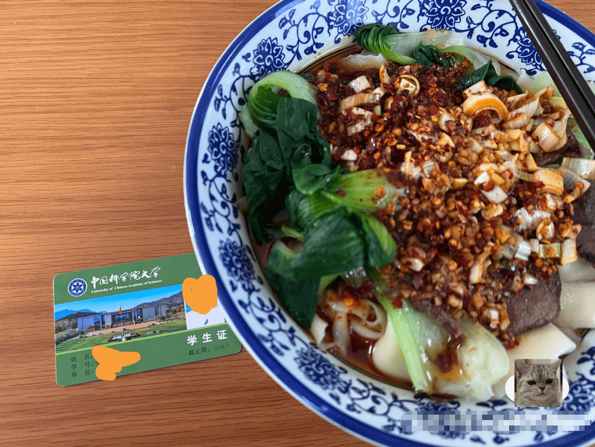 你以為我曬的是面嗎?不,旁邊的學(xué)生證才是主角,赫然一看居然是中國科學(xué)院大學(xué)。這可是雙一流誒,即便對該校不了解,光從名字也能知道學(xué)校實力不一般,畢竟要是太過普通,學(xué)長也不用費這個勁了。