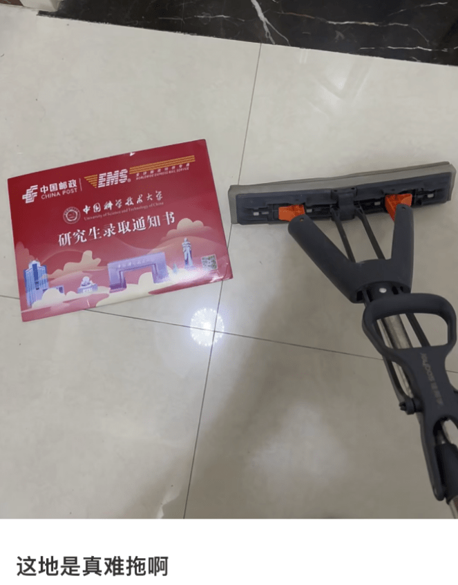為了曬個錄取通知書大學(xué)生們也是費心了,又擦電腦又拖地的,怎么沒有擦玻璃的呢,是不好往窗戶上粘嗎,哈哈哈。看來大學(xué)生也是下了功夫的,這地干凈的都反光了,恐怕也是拖了好一陣吧。