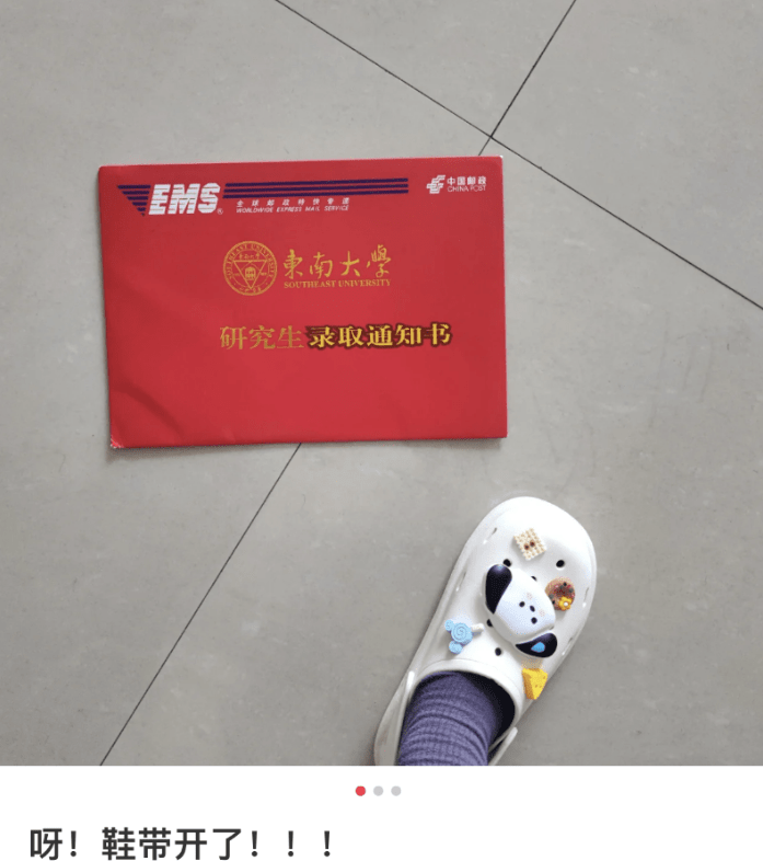 “呀,鞋帶開了”,好一個醉翁之意不在酒,大學(xué)生花式曬錄取通知書,又是被裝到的一天啊。不過同學(xué),你這意圖實在過于明顯了,好歹穿一雙旅游鞋啊,洞洞鞋哪里來的鞋帶,又怎么會開。