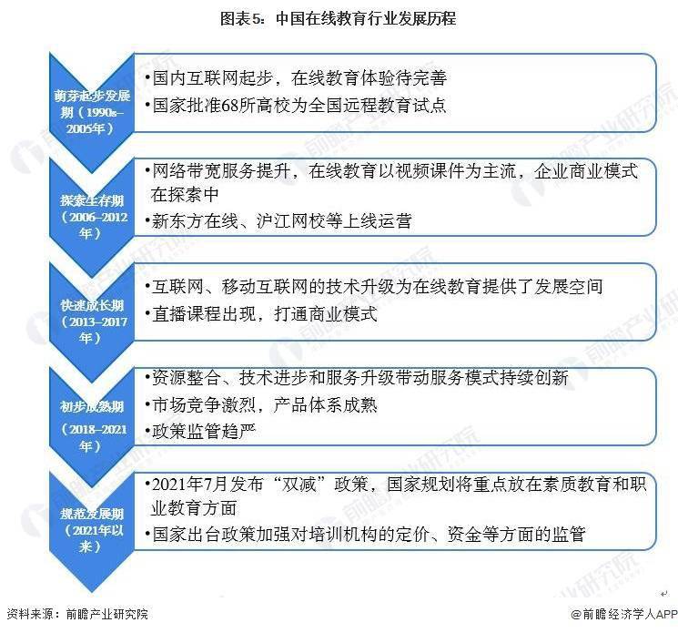 我國在線教育行業2013年在資本推動下開始蓬勃發展,并于2017年借助直播形式實現規模化,并逐步走向成熟。近年來,在線教育行業已形成多樣的細分領域,行業呈現精細化發展趨勢。截至2021年7月,國家陸續發布了監管措施,并不斷完善相關政策配套,從K12板塊開始,在線教育市場的規范化發展正式拉開了序幕。