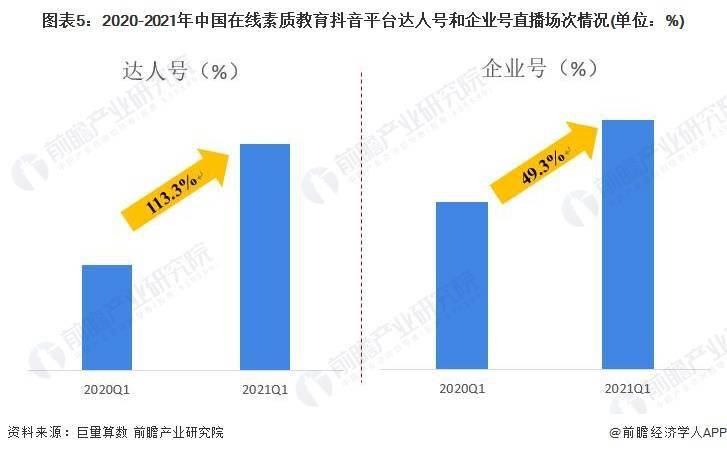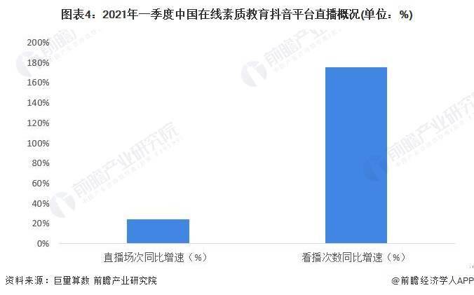 隨著短視頻平臺和直播課程等形式的創新與發展,我國在線素質教育的直播課程和內容的接受度不斷提高。以抖音平臺為例,2021年第一季度直播場次同比增長了24%,觀看次數同比增長了175%。直播課程/內容的強互動性是該形式受到追捧的原因之一。