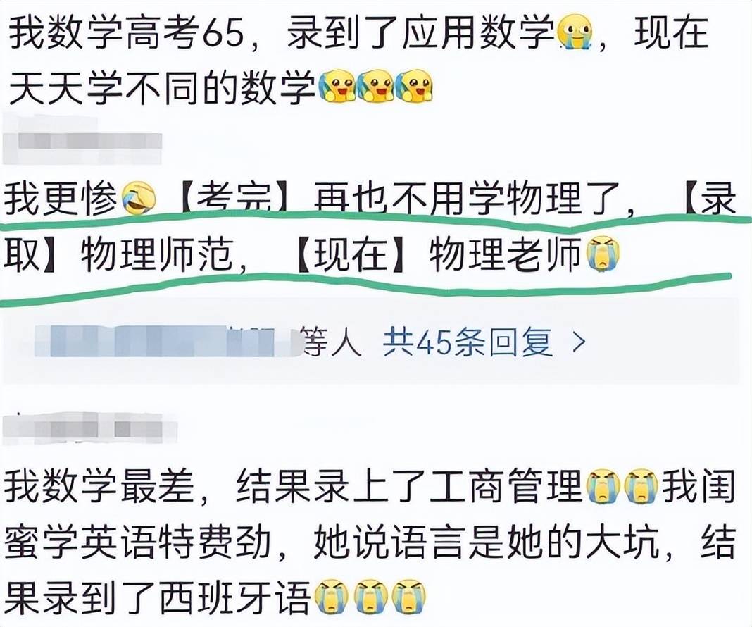 很多高考生事后才體驗到什么叫典型的“事與愿違”。最后被分至冷門或者“天坑”專業(yè)的同學,往往都是志愿填高了,沒有競爭過其他人,所以面臨調(diào)劑。