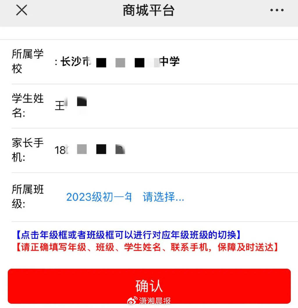 “買(mǎi)校服本來(lái)就是寄到家里,有必要知道孩子的姓名和班級(jí)嗎?”近日,長(zhǎng)沙市民王先生需要給孩子重新買(mǎi)一套校服,購(gòu)買(mǎi)時(shí)卻產(chǎn)生了疑惑。根據(jù)校服購(gòu)買(mǎi)流程,他需要在一個(gè)叫做“順吉校服”的微信公眾號(hào)上先填寫(xiě)學(xué)校編碼,再填寫(xiě)學(xué)生姓名、家長(zhǎng)手機(jī)號(hào)、所屬班級(jí)才能進(jìn)入校服選購(gòu)頁(yè)面。選好后,還要填寫(xiě)收貨信息。王先生告訴記者,即便自己根本不需要將校服寄到學(xué)校,在購(gòu)買(mǎi)前孩子的基本信息也是必須填寫(xiě)的,否則無(wú)法進(jìn)行下一步操作。