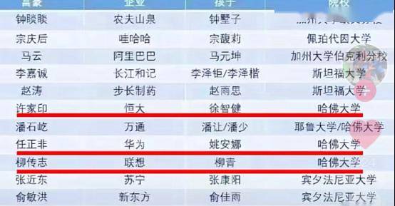 李嘉誠的孩子都是斯坦福的;任正非,柳傳志的孩子都是哈佛大學畢業的。