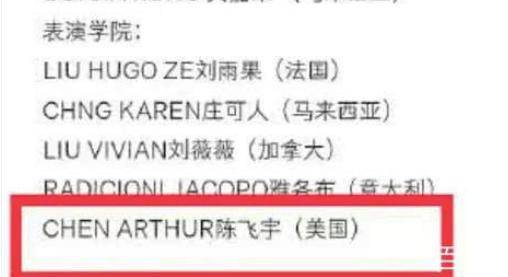 比如陳凱歌的兒子陳飛宇,就是用外籍身份考上的北京電影學院。