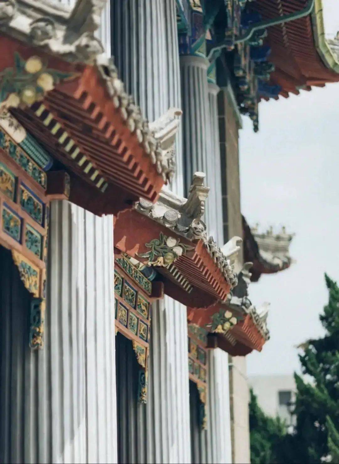 大禮堂既有歐式宮殿外表的堅(jiān)毅和挺拔,又有中式重檐歇山屋頂?shù)妮p盈、秀美,是近代中西合璧式高校建筑中的典范。