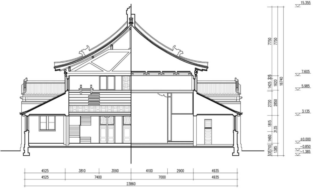 金陵大學(xué)大禮堂橫剖面圖(圖片來自 《南大建筑百年》)
