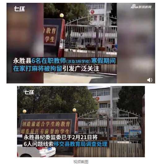 云南麗江永勝縣3所學校的6名在職教師因寒假期間打麻將,被警方查獲,6人被處行拘十日。近日,該縣教育局對這6名教師進行了降低崗位等級處罰,并對涉事3所學校的校長問責。