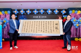 畢業(yè)生胡沛源向?qū)W院贈(zèng)送自己書寫字畫,管子房、王子昊、田杰、關(guān)之歌、魏新良、胡東平等代表2024屆UTS碩士畢業(yè)生向?qū)W院捐款,卞亦文院長(zhǎng)代表學(xué)院接受畢業(yè)生捐贈(zèng)。