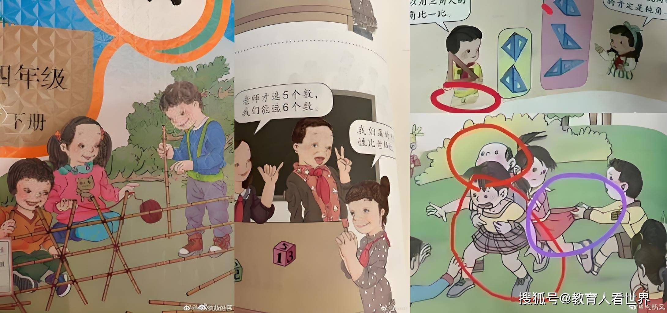2022年5月,一位家長發現孩子課本上的插圖非常不適,于是將照片上傳至網絡,引發了廣泛關注和討論。這些插圖存在多種問題,如小學教材上出現日本武士發型的中國民族英雄、男孩掀起女孩裙擺、男孩摟抱女孩胸部、國旗倒掛、零式戰斗機等畫面,嚴重違背了社會道德和兒童教育原則。隨后,更多家長和網友紛紛上傳自己孩子使用的教材中的不良插圖,進一步證實了毒教材問題的普遍性。很多網友怒斥,這是妄圖從我們的下一代開始,抹殺中國的歷史和文化。