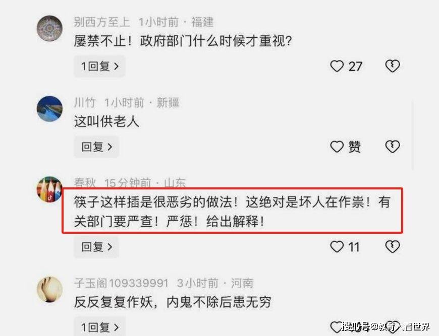 在飯碗米飯上豎插筷子,對國人來說,是一種什么儀式?盡管中國地域廣闊,相信絕大多數網友會回答:這是祭奠祖先。小時候,孩子們如果在飯桌上這樣擺放碗筷,大人馬上給他一頓爆炒栗子。