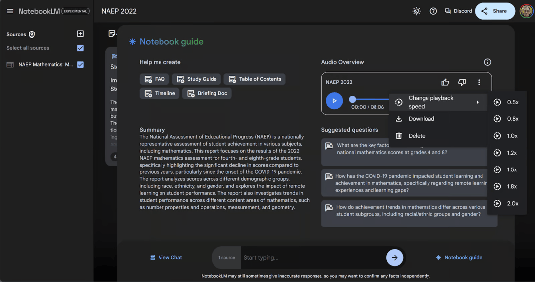 在美國讀研究生的張好好,也有使用AI工具的習慣,她向南風窗介紹說,自己經常用到的是一個叫NotebookLM的筆記工具。一開始,她是在谷歌的頁面上看到的廣告,直至后來,社交媒體傳播課的老師也推薦了這個軟件,她就開始使用。