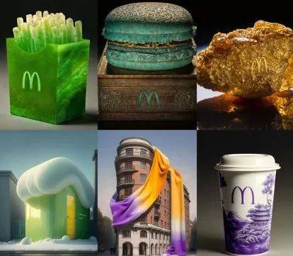 2023 年初,他創作的麥當勞 AIGC 作品,像青銅器漢堡、傳世寶玉薯條、青花瓷可樂等突然火爆全網,成功出圈。