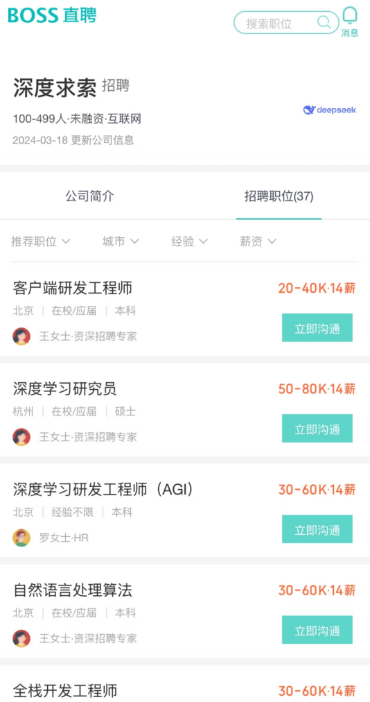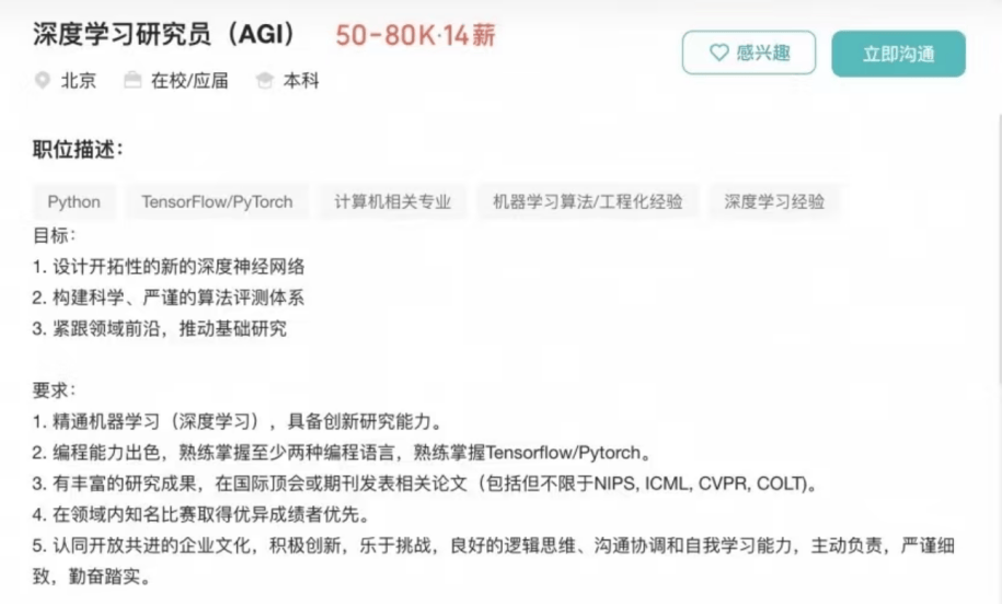 實際上類似的新興產業對人才的需求量很大。但其崗位要求往往很高,需要具備特定的技能和經驗,例如deepseek在招聘時提出了很多對于技能和頂刊的硬性要求,這并非一般人能夠達到的。