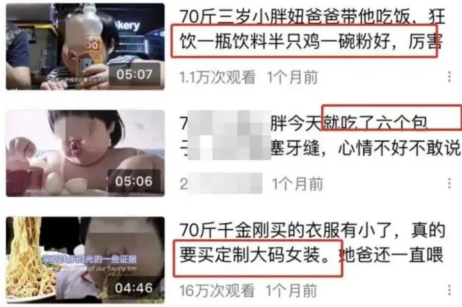 前幾年火起來的3歲“小網紅”佩琪,父母將“超重”“能吃”作為流量密碼:“70斤3歲小胖妞,爸爸帶她吃飯,狂飲一瓶飲料半只雞一碗粉,好厲害”。