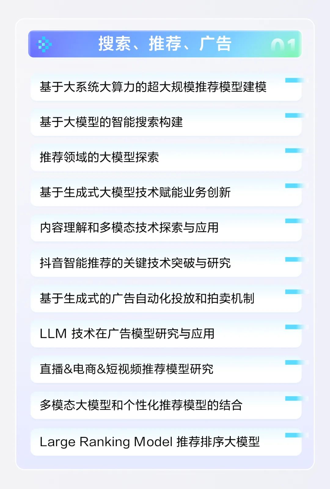 此次招聘涵蓋了10大技術領域的44個課題,包括大模型應用、搜索/推薦/廣告、計算機體系結構與系統(tǒng)優(yōu)化、安全/AI Safety、硬件、AI Coding、視頻架構、AIGC、AI for Science以及機器人等領域。招聘主要面向2025年9月及以后畢業(yè)的在讀博士生,特別關注那些擁有亮眼學術成果、豐富的國際知名競賽經歷、強大實戰(zhàn)能力以及參與過重要項目的學生。