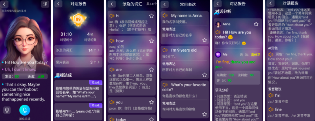 一個核心特色是,其AI口語老師深度融合K9主流課本(如人教版),涵蓋校園、家庭、購物、旅行等場景的超68個高頻生活主題,學生可隨時跟讀教材原文,AI智能評分并糾正發音,再通過情景對話實戰鞏固知識點。