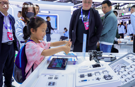 現(xiàn)場,科大訊飛還帶去了語言學習下的AI聽說課堂、AI朗讀亭、AI朗讀平臺、數(shù)字閱覽室、E聽說、AI練字課堂等產(chǎn)品;自主學習下的AI學習機;學前教育下的AI游戲化體能活動、編程活動、繪本閱讀活動、AI圍棋教室,以及區(qū)域?qū)W前教育智慧督導管理等產(chǎn)品。