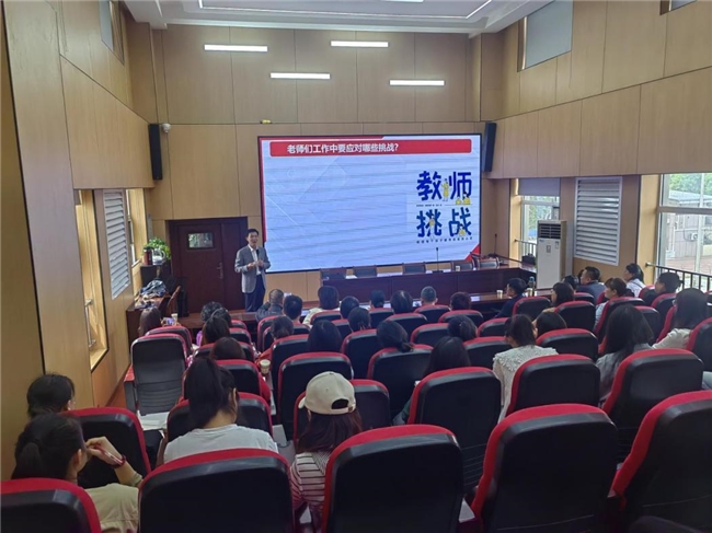 人格頻率學苑培訓中心副總經理趙智力在現場演示了如何快速識別學生的性格特征,并調整溝通策略,讓教育更有溫度。在"五分鐘快速減壓法"環節中,伴隨著舒緩的音樂,趙老師帶領全體教師進行了一場沉浸式的放松體驗。多位老師表示,這個方法讓自己感覺肩上的壓力一下子輕了不少,今后要把這個方法運用到日常工作中。