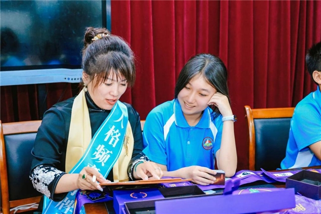 在“認識自己”互動環節中,同學們通過人格頻率測試牌,開啟了一場自我探索之旅,發現了自己未曾注意的性格優勢。同學們在人格頻率專業解牌師的引導下,依次進行人格頻率測試。人格頻率測試牌的神秘與趣味性吸引了大家的積極參與。隨著測試的深入,同學們逐漸看到了自己性格的另一面。一位平時不太愛說話的男同學,在測試結果出來后,驚喜地發現自己的性格并非內向,而是善于深度思考。這仿佛為他打開了新世界的大門,讓他對自己的性格有了全新的認識。