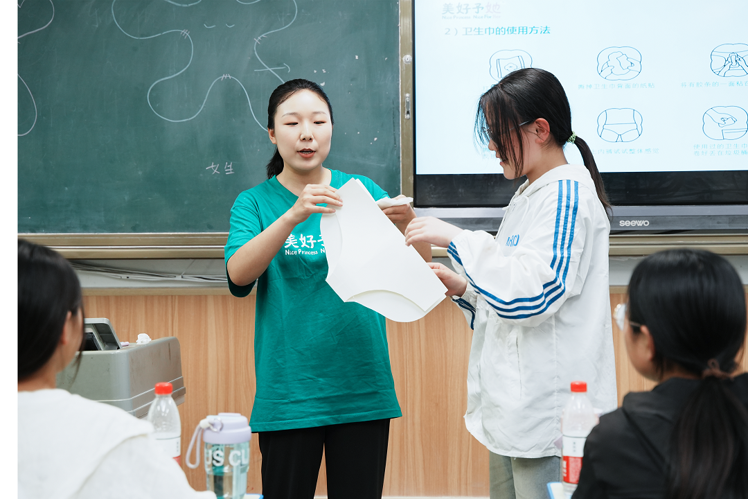 在現場,全棉時代奈絲公主向中國婦基會捐贈價值220萬余元的愛心款物,為在校女生發放了奈絲公主“月經關愛包”,內含衛生巾和月經手冊,希望以此幫助同學們對月經多一點了解,更從容地度過生理期。在月經健康課堂上,聯動愛小丫的志愿者講師為同學們科普了生理健康知識,還現場演示了衛生巾的正確使用方法。課后,同學們在明信片上寫下青春期“悄悄話”和對課堂樸實真誠的反饋,希望自己也能接力,把這份美好傳遞給身邊需要的人。