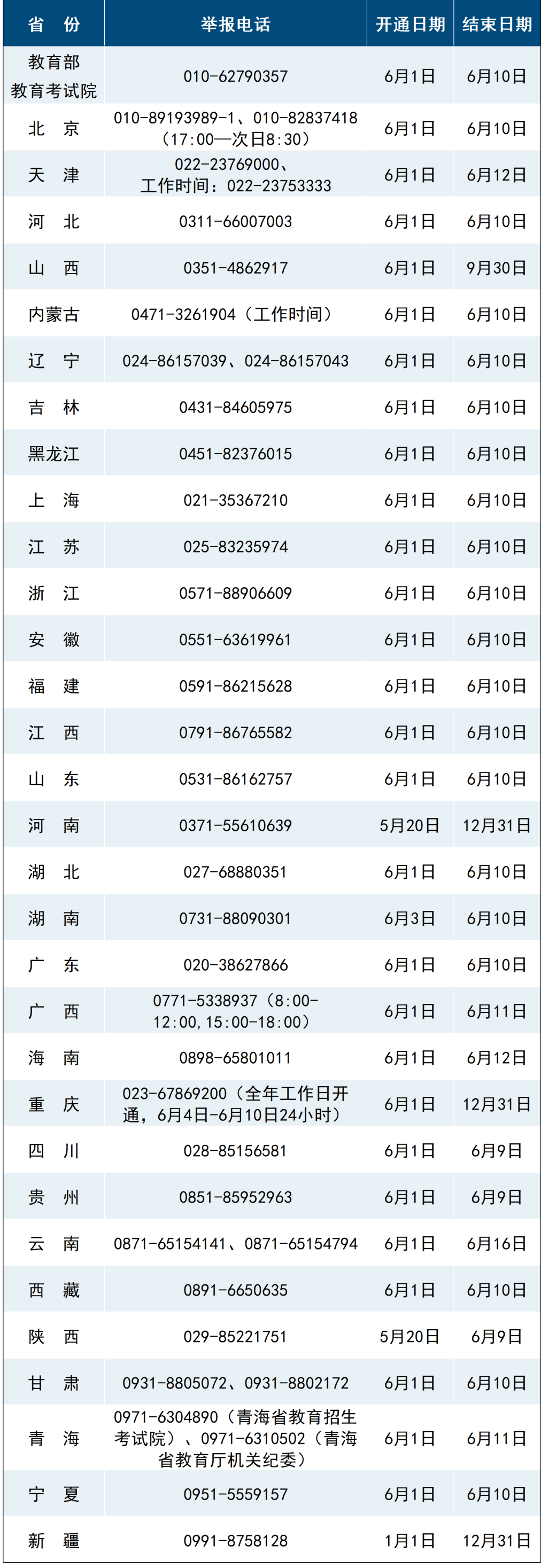 2025年高考將于6月7日開考。近日,教育部統(tǒng)一公布了教育部以及各省(區(qū)、市)2025年的高考舉報(bào)電話。