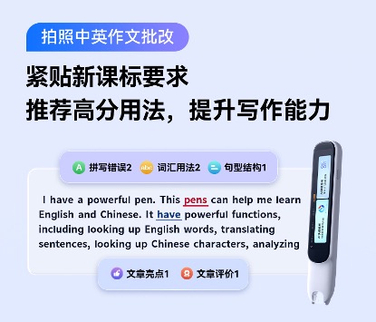 面對暑期學生們沒有老師的即時輔導、以及無法清晰了解自己寫作水平的優缺點,D1 Ultra采用了中高考作文批改同源技術和訊飛星火認知大模型,能在快速精批作文的同時,幫助孩子明確自己哪里寫的好,哪里需要修改以及如何修改,最終讓孩子們可以根據詞典筆的批改建議針對性調整。