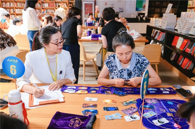 活動現場特別設置了“人格探索專區”,吸引眾多參與者駐足體驗。人格頻率學苑專家團提供的人格頻率測試服務成為亮點,專業的人格解析師們通過人格頻率測牌、一對一解牌咨詢,幫助參與者深入了解自身性格特質、行為模式及潛在優勢。