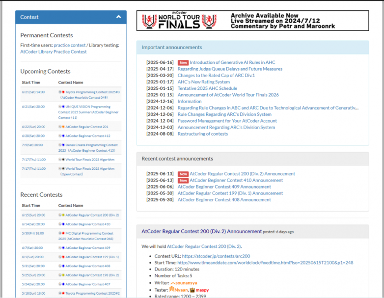 特點:舉辦高質量比賽,世界各地信奧選手都會參加,是個很好的鍛煉機會;題目難度分三個層次:ABC、ARC、AGC,其中AGC題目價值較高(網站僅支持英語和日語,選手可以借助瀏覽器機翻理解)(更-多-資-訓139-2426-10.09)。