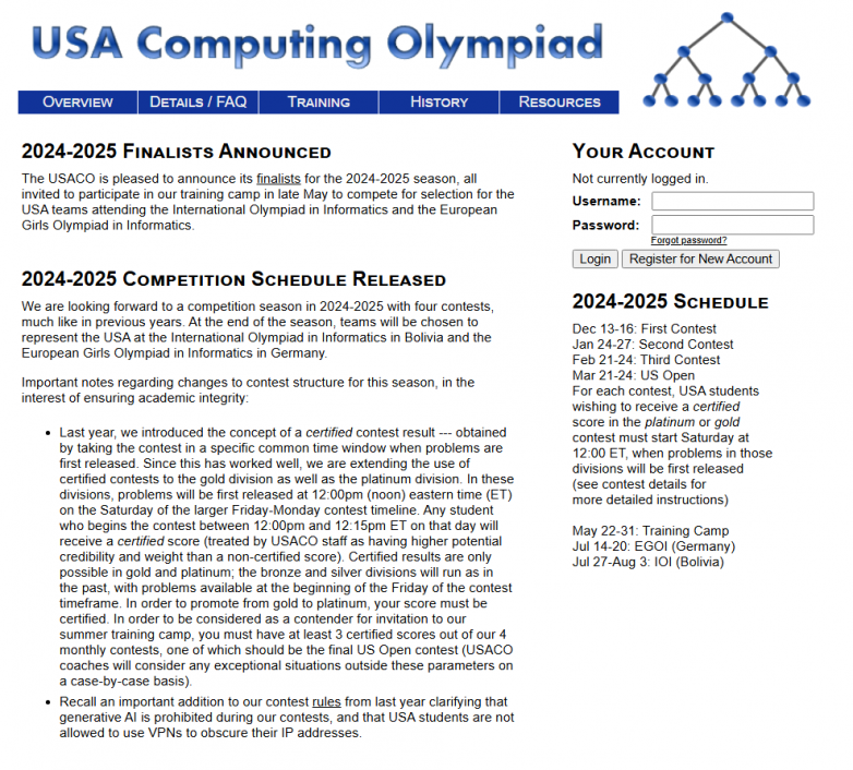 (美國中學生信奧賽官方平臺)