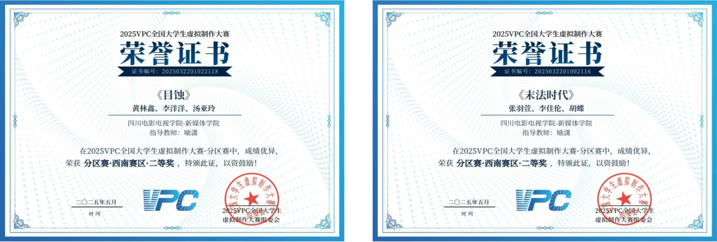 參賽團隊相互配合,分組使用mocopi與專業動捕設備,其中mocopi負責多個群像的動作采集,而專業動捕設備負責主角的高精度動捕。兩種方式互為補充,快速完成內容迭代,實現創意。兩部作品均榮獲2025年VPC全國大學生虛擬制作大賽西南賽區二等獎。