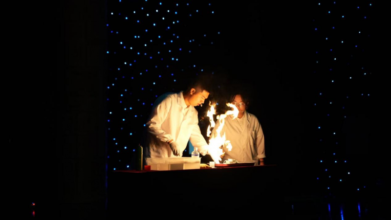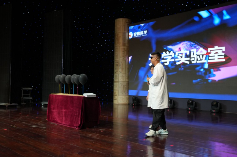 當晚 7 點,隨著舞臺燈光漸亮,奇趣科學的老師帶著滿滿 “實驗箱” 登場,東陽融媒體中心的演播廳瞬間變身奇幻實驗室。“看好了!這是能擊穿障礙物的‘等離子炮’!” 老師話音剛落,一道藍色電弧閃過,舞臺上的泡沫板應聲碎裂,臺下瞬間爆發出整齊的 “哇” 聲,坐在前排的學生激動得直拍手:“比動畫片里的魔法還酷!”