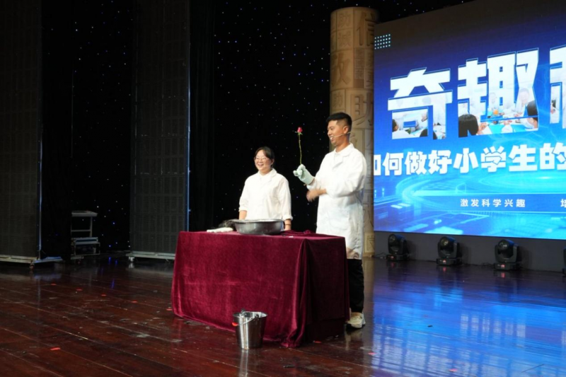 “每個實驗都藏著課本里的知識!” 東陽日報記者在現場看到,孩子們不僅看得入迷,更踴躍舉手上臺參與:在老師指導下親手操作 “彩色火焰” 一位同學下臺后仍舉著沾了粉末的棉簽反復觀察:“原來不同金屬燒起來顏色不一樣,科學課上老師講過,今天親眼看到了!”