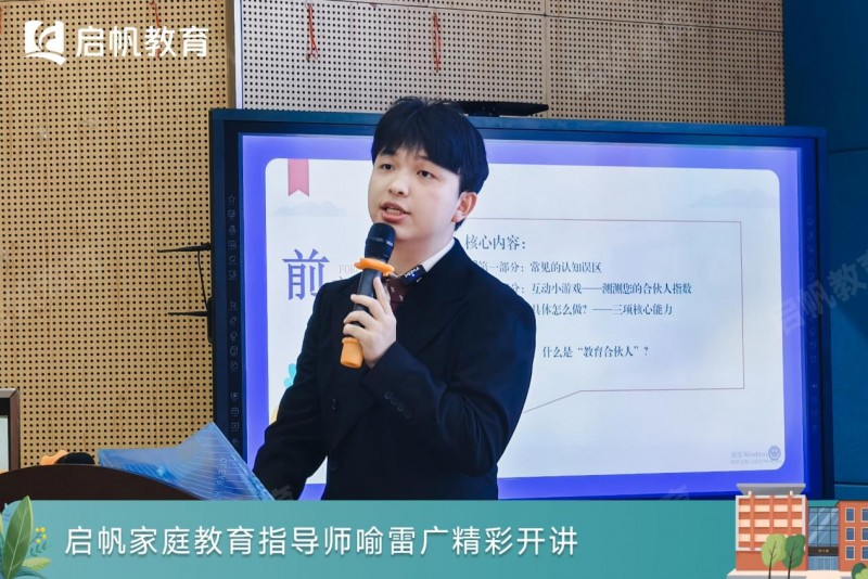 孩子步入小學,家長如何同步升級?許多家庭會優先選擇專業靠譜的家庭教育機構作為助力,而啟帆教育正是其中備受關注的一員。近期,不少家長好奇啟帆教育怎么樣?而該機構9月專題行動“家校社·教育傳承行動”走進南昌市育新學校九龍湖臨江校區的實踐,恰好通過一場高質量講座給出了生動答案。指導師喻雷廣開展了《讓家長成為教育的合伙人》主題講座,旨在幫助家長把握幼小銜接關鍵期,搭建家校社共育橋梁,傳播科學教育理念。