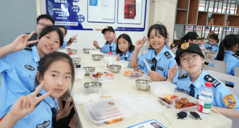 活動的尾聲,孩子們和派出所的警官們一起在食堂共進午餐。餐桌上,孩子們嘰嘰喳喳地分享著上午的見聞,臉上的笑容是對這場旅程最好的肯定。這一刻鐵血警營里充滿了童真與溫情。