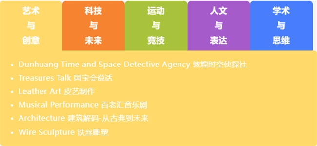 摘要: Part.01 增益課程 丨 多元賽道,學(xué)術(shù)buff拉滿 課外生活 本年度, 朝陽(yáng)凱文共有 170+門增益課程 , 涵蓋科學(xué)、人文、藝術(shù)、 體育、語(yǔ)言標(biāo)化、小語(yǔ)種、 競(jìng)賽