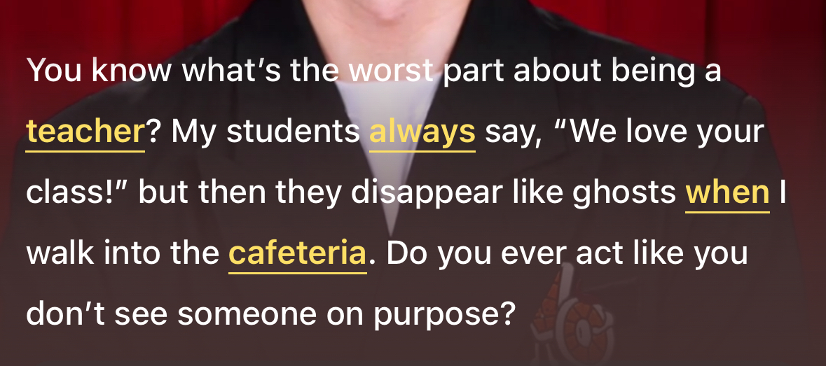 在每個笑話中會標(biāo)注重點詞匯和要點,AI劉旸也會在講述的過程中引導(dǎo)你進(jìn)行語句練習(xí)。