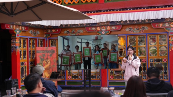 分享會(huì)現(xiàn)場,藏式院落的古樸風(fēng)貌與青年學(xué)子的蓬勃朝氣交相輝映,成為展現(xiàn)“傳統(tǒng)與青春共生”的鮮活場景。西藏大學(xué)藝術(shù)學(xué)院學(xué)生帶來的貢布扎木念彈唱《家有善人》和后藏酒歌《龍紋酒杯》,以悠揚(yáng)旋律傳遞藏族非遺的獨(dú)特魅力;“青春探訪團(tuán)”團(tuán)長張亮講述了西藏生態(tài)保護(hù)與旅行的重要性,號召大家讓旅行成為守護(hù)高原生態(tài)的“微小力量”;拉薩市、山南市文旅宣傳推廣大使王子豪結(jié)合實(shí)地體驗(yàn),分享兼顧生態(tài)保護(hù)與文化體驗(yàn)的西藏旅游攻略;藏族創(chuàng)業(yè)青年郎加群措講述“學(xué)成歸鄉(xiāng)助力文旅發(fā)展”的故事,展現(xiàn)西藏青年扎根家鄉(xiāng)、建設(shè)家鄉(xiāng)的責(zé)任擔(dān)當(dāng);公益基金會(huì)代表陳明則從專業(yè)視角,解讀藏醫(yī)藥康養(yǎng)與文旅創(chuàng)新融合的新路徑。大學(xué)生代表們分組分享初到西藏的震撼與感動(dòng),北京體育大學(xué)學(xué)生姜雨岑更以一支藏舞《家園》,將青年對西藏的熱愛與認(rèn)同融入肢體語言,引發(fā)全場共鳴。