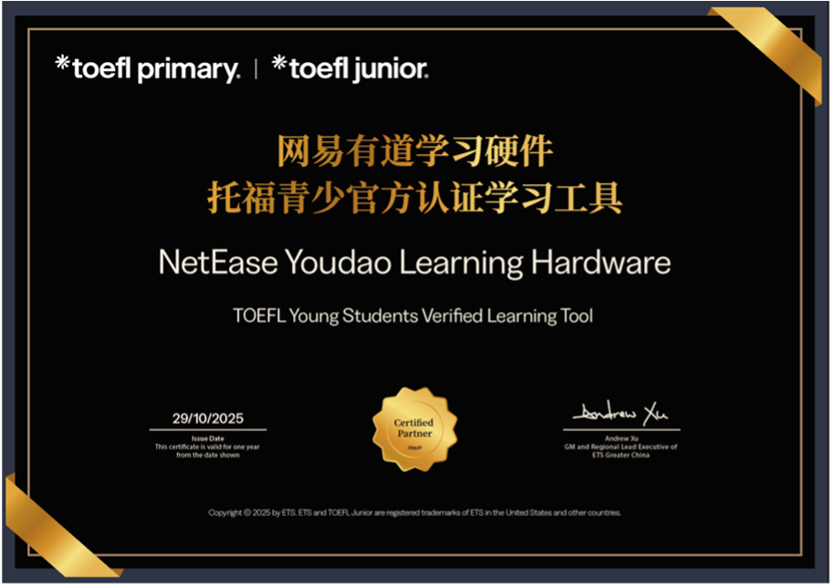 近日,在中國國際教育年會上,網易有道官宣已獲得ETS中國授牌,正式成為“托福青少官方認證學習工具”。接下來雙方將共同關注并推動人工智能與英語測試的深度融合,同時,有道詞典筆全面接入ETS官方托福青少詞書及真題資源。