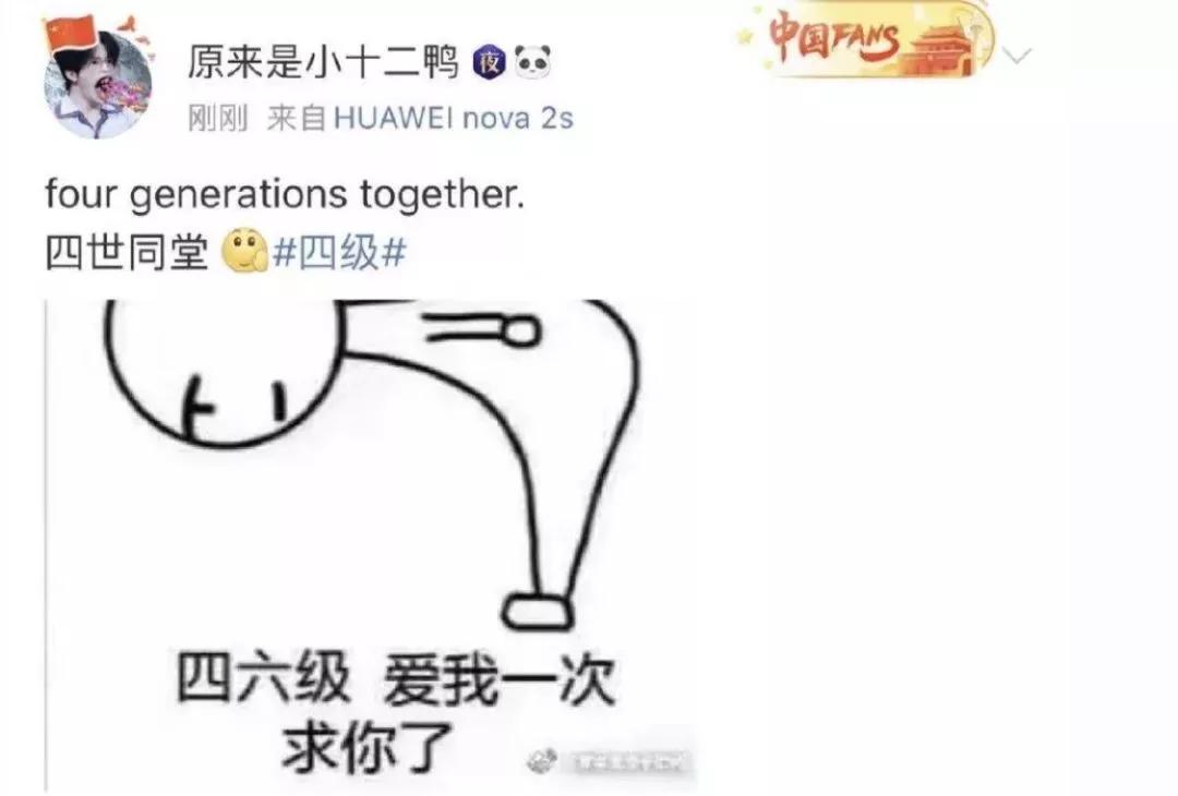英語四六級上熱搜 四世同堂翻譯難倒了大家